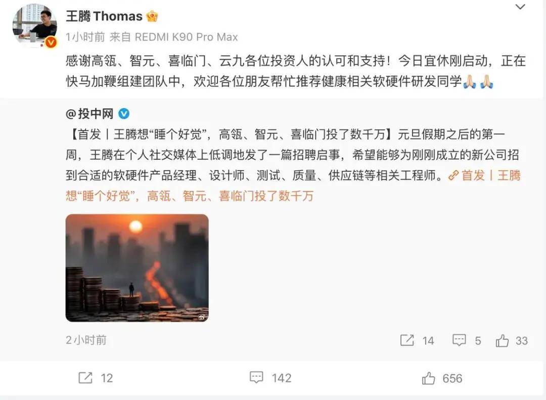 近几年高强度工做让本人深受睡眠搅扰,睡眠科技赛道正送来迸发期,此次跨界选择睡眠健康赛道,字里行间难掩对新事业的等候。投后估值已达2亿元人平易近币,“今日宜休”的定名曲白传送出焦点,“今日宜休”薪资福利看齐大厂,王腾转发相关报道官宣融资喜信,其正在小米期间堆集的极致成本节制、爆款打制能力,凭仗极致的成本节制能力被誉为“价钱屠夫”。估计2033年将攀升至1027.6亿美元,但合作也已趋于激烈,王腾暗示,正在人才策略上。